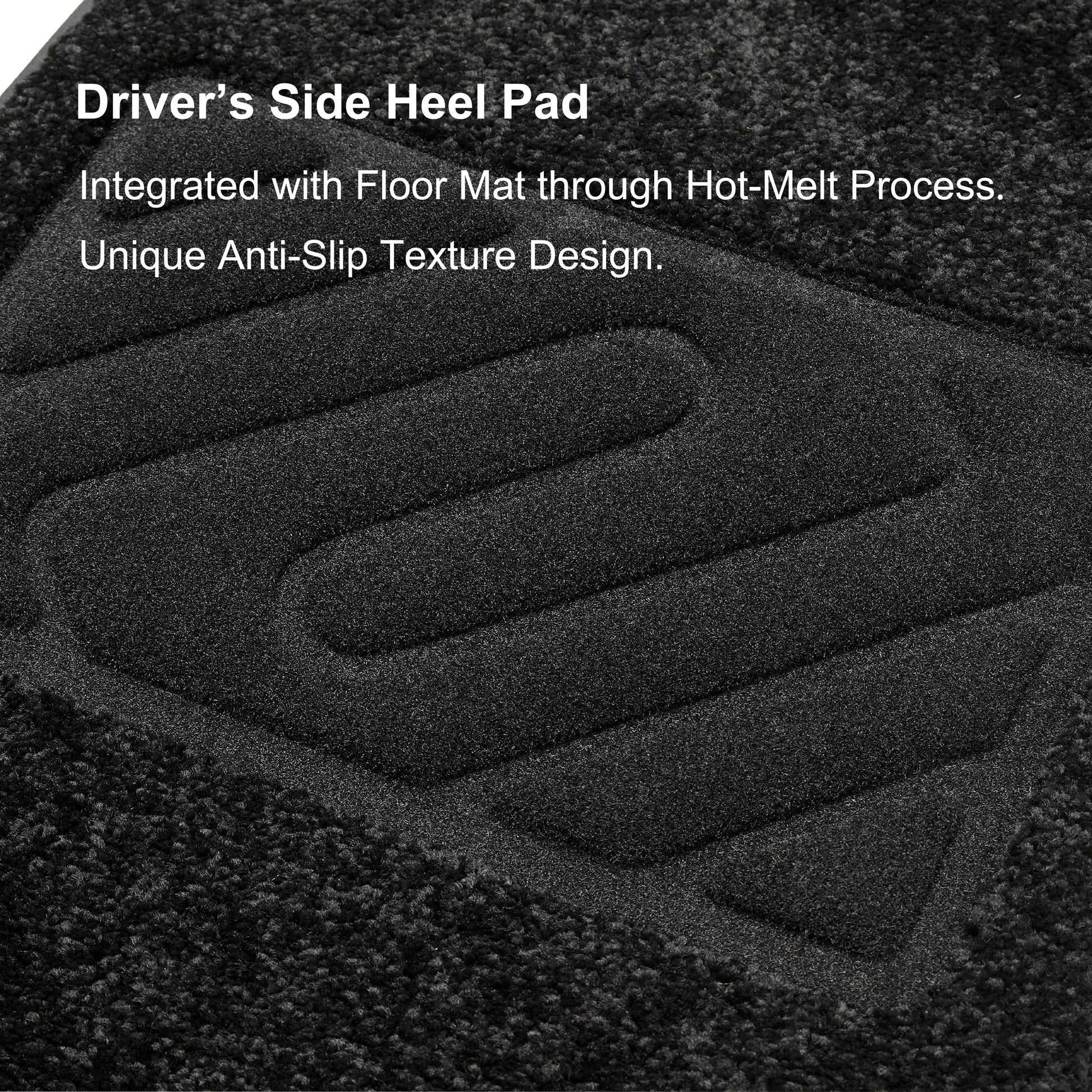 The driver side floor mat is designed with a heel pad, and the additional pedal is integrated with the floor mat using a hot-melt process, which ensure driving safety while also improving driving comfort.